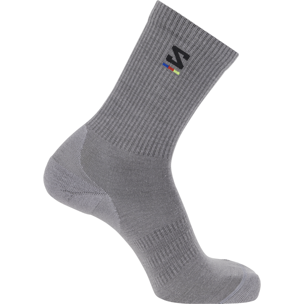 Skarpety Salomon Sunday Smart Crew, wykonane z miękkiej wełny merynosowej, zapewniają doskonałą regulację temperatury, wygodę i trwałość. Elastyczne wsparcie łuku stopy, wzmocnienia oraz płaskie szwy gwarantują idealne dopasowanie i komfort na co dzień – z dbałością o detale i najwyższą jakość.